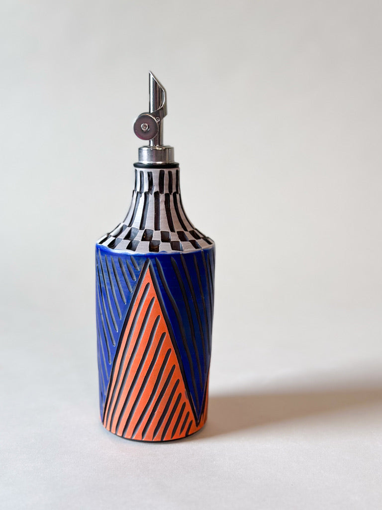 Oil Dispenser with Silver or Gold top.